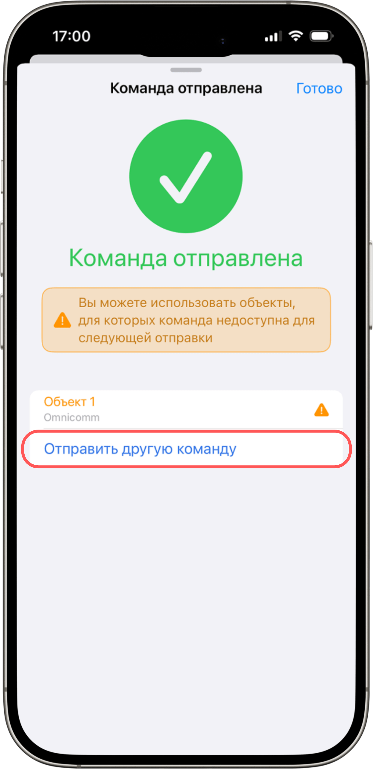 На этом экране можно нажать «Отправить другую команду», чтобы выбрать и отправить другую команду именно для этих объектов.